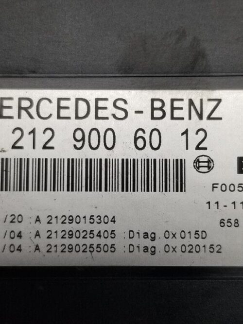 Genuine Mercedes-Benz W212 E-Class fuse box / SAM module removed from a 2012 E250 CDI. This unit manages multiple electrical circuits and is commonly required when diagnosing electrical faults, intermittent power issues, or component non-function.