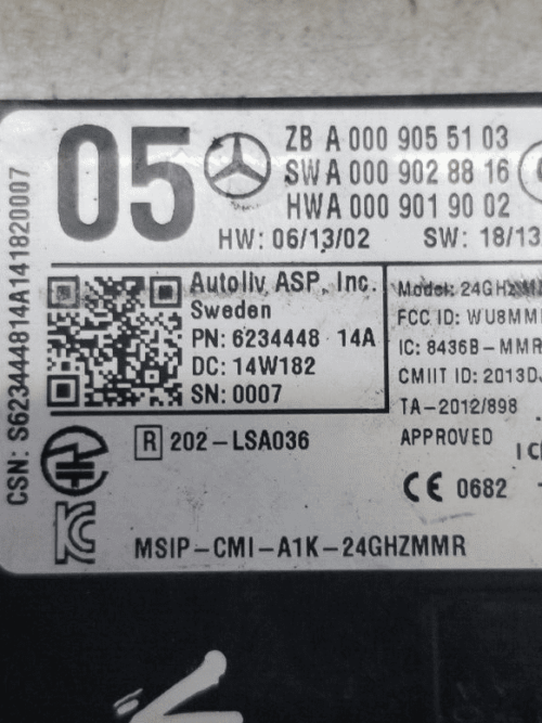 Genuine Mercedes-Benz Front Distronic Radar Module (A0009055103) for W176, W207, and W212 models. Fully tested and ready to install.