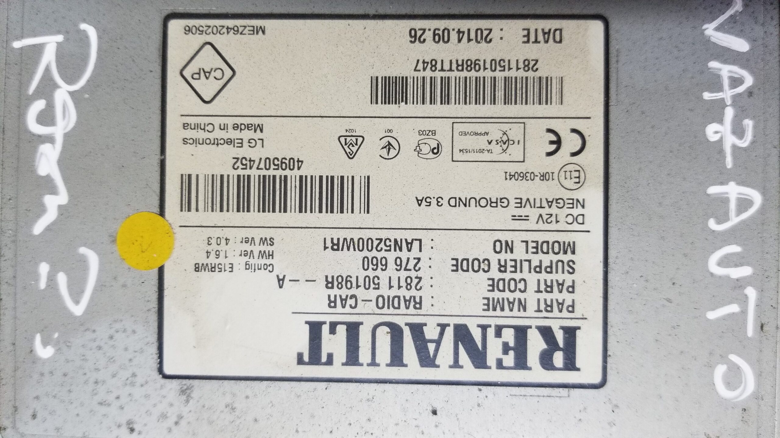 Please note: The unit is sold without the security code. To retrieve it, contact a Renault dealer or use a decoding service.